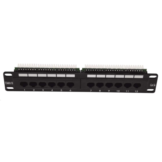 Patch panel 12 port Cat5E UTP pro 10" rozvaděče zářezové svorkovnice typu "DUAL" plřípadně s držákem možná montáž na zeď či atypického rozvaděče
