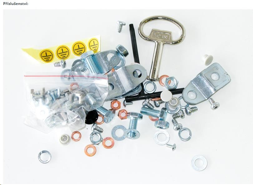 Příslušenství: - uši pro uchycení nad a pod skříní s přesahem 10 mm na každé straně (odsazení od zdi při jejich užití +8 mm)