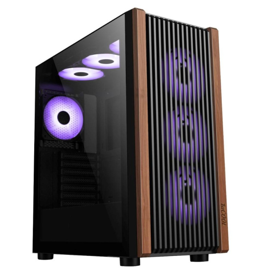 Skříň G6 Noble spojuje moderní technické prvky s elegantním designem. Přední panel s dřevěným dekorem nejen decentně vyniká, ale zároveň umožňuje efektivní proudění vzduchu a jednoduché čištění osazených filtrů. Zvolit můžete z několika variant, od varianty s pevnou kovovou bočnicí a třemi standardnímy ventilátory v příslušenství, až po variantu se setem s ARGB podsvícením ventilátorů, který lze snadno synchronizovat se systémy jako ASUS Aura Sync, MSI Mystic Light, GIGABYTE RGB Fusion či ASRock Polychrome Sync.