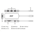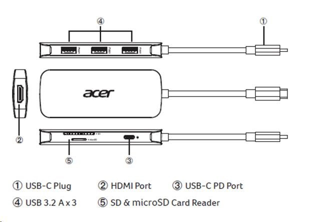 Je vybaven 3 porty USB-A 3.2 Gen1 podporujícími vysokorychlostní přenos dat až 5 Gb/s, čtečkami karet SD 3.0 a microSD, stejně jako 1 portem HDMI schopným rozlišení 4K při 60 Hz, což z něj dělá ideálního společníka na cesty.