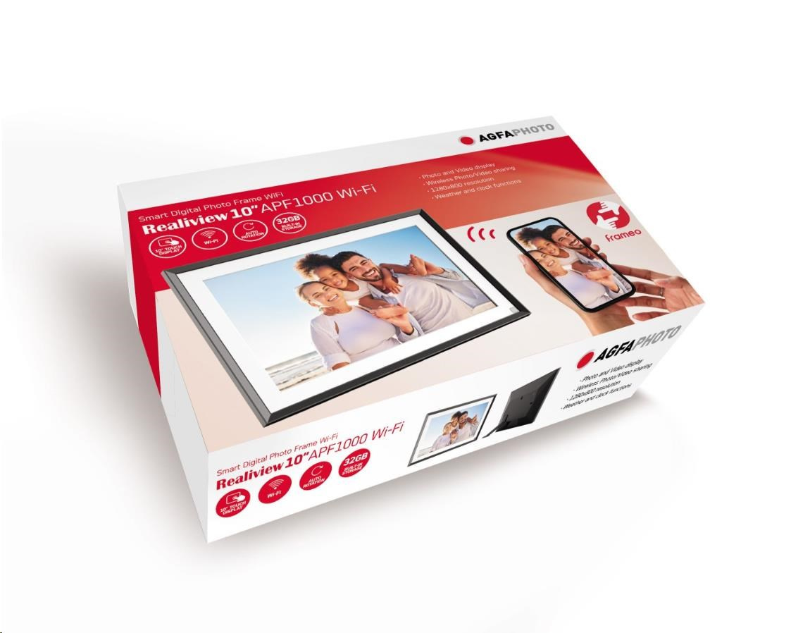 Fotorámeček Realiview APF1000WIFI vám nabízí jedinečný zážitek ze sdílení fotografií a videí. Vaše rodina a přátelé vám mohou posílat své nejlepší záběry přímo do vašeho rámečku přes WiFi, ať jsou kdekoli na světě, díky aplikaci FRAMEO (kompatibilní s iOS a Android). Kvalita 10" (25,4 cm) dotykové obrazovky vylepší všechny vaše fotografie a videa. A s 32 GB vestavěné paměti si můžete být jisti neomezeným ukládáním svých nejpamátnějších okamžiků.