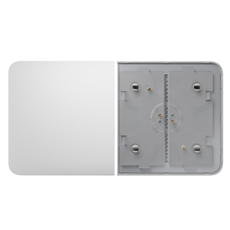 Panel je vždy nutné kombinovat s Ajax relé a Ajax rámečkem dle Vašeho výběru - dohromady vytváří inteligentní nástěnný vypínač - LightSwitch.