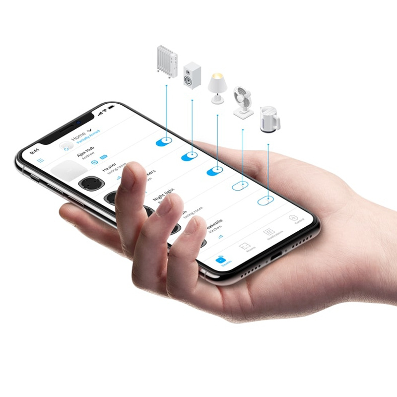 Ajax Socket umožňuje prostřednictvím chytré mobilní aplikace snadno ovládat připojené elektrické spotřebiče. Díky barevnému LED indikátoru zatížení a analytickým funkcím je možné měřit spotřebu elektrické energie. Tato verze zásuvky (1.generace) neobsahuje pulzní režim.