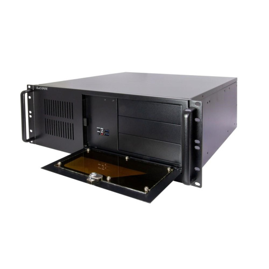 IPC 4U-450 je velice kvalitní serverová skříň určená pro montáž do rackového rozvaděče 19". Skříň je vyrobena z plechu o dnes již málo vídané sile 1,2mm. Čelní panel je zakryt odklopnými plechovými dvířky s možností uzamčení. Při zavřeném panelu jsou viditelné pouze indikační LED přes průhlednou část dvířek. Po odklopení dvířek jsou k dispozici ostatní ovládací prvky.