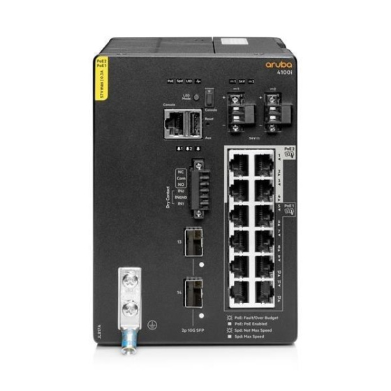 | Aruba 4100i 12-port 1GbE (8-port Class 4 POE and 4-port Class 6 POE) 2-port SFP+ DIN Mount Switch (JL817A) | ||