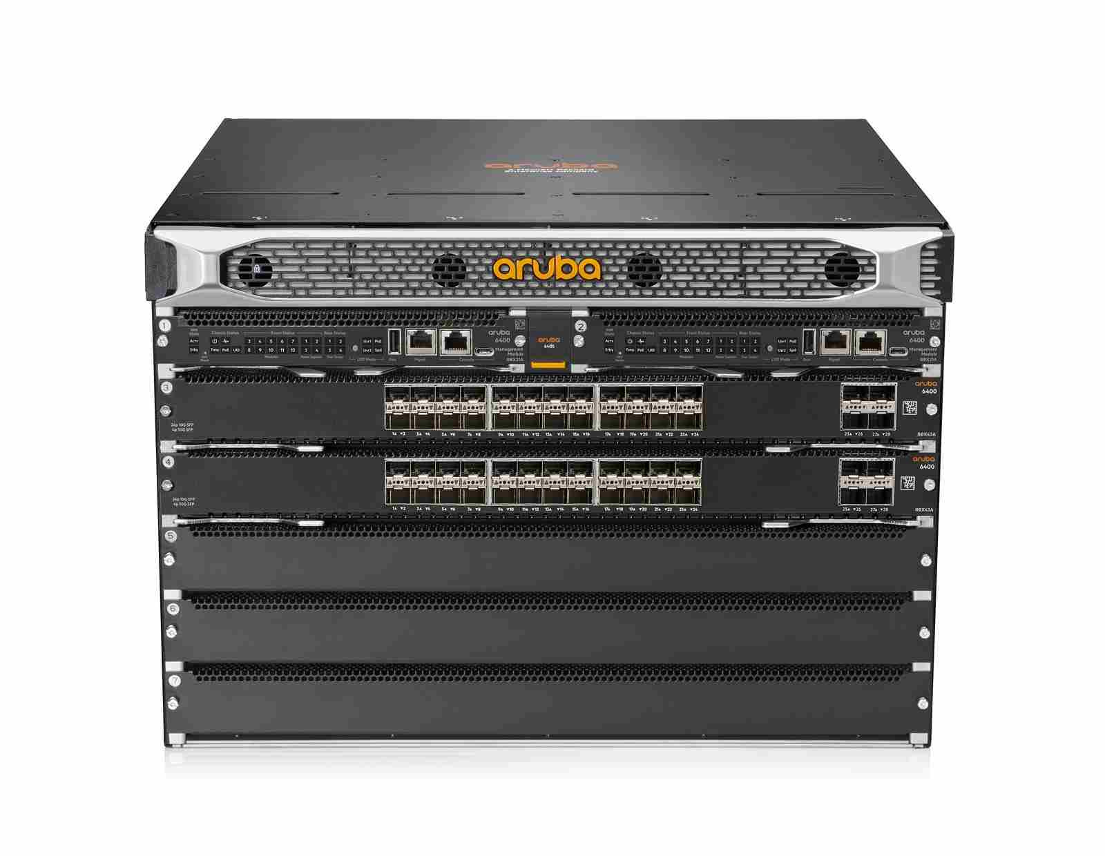 • Includes 1x R0X31A Aruba 6400 Management Module with 1 open slot