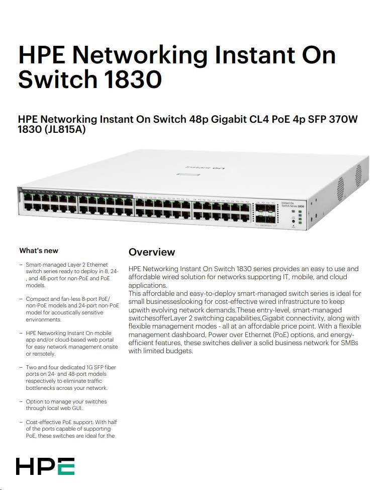 HPE Networking Instant On Switch 48p Gigabit CL4 PoE 4p SFP 370W 1830 (JL815A)