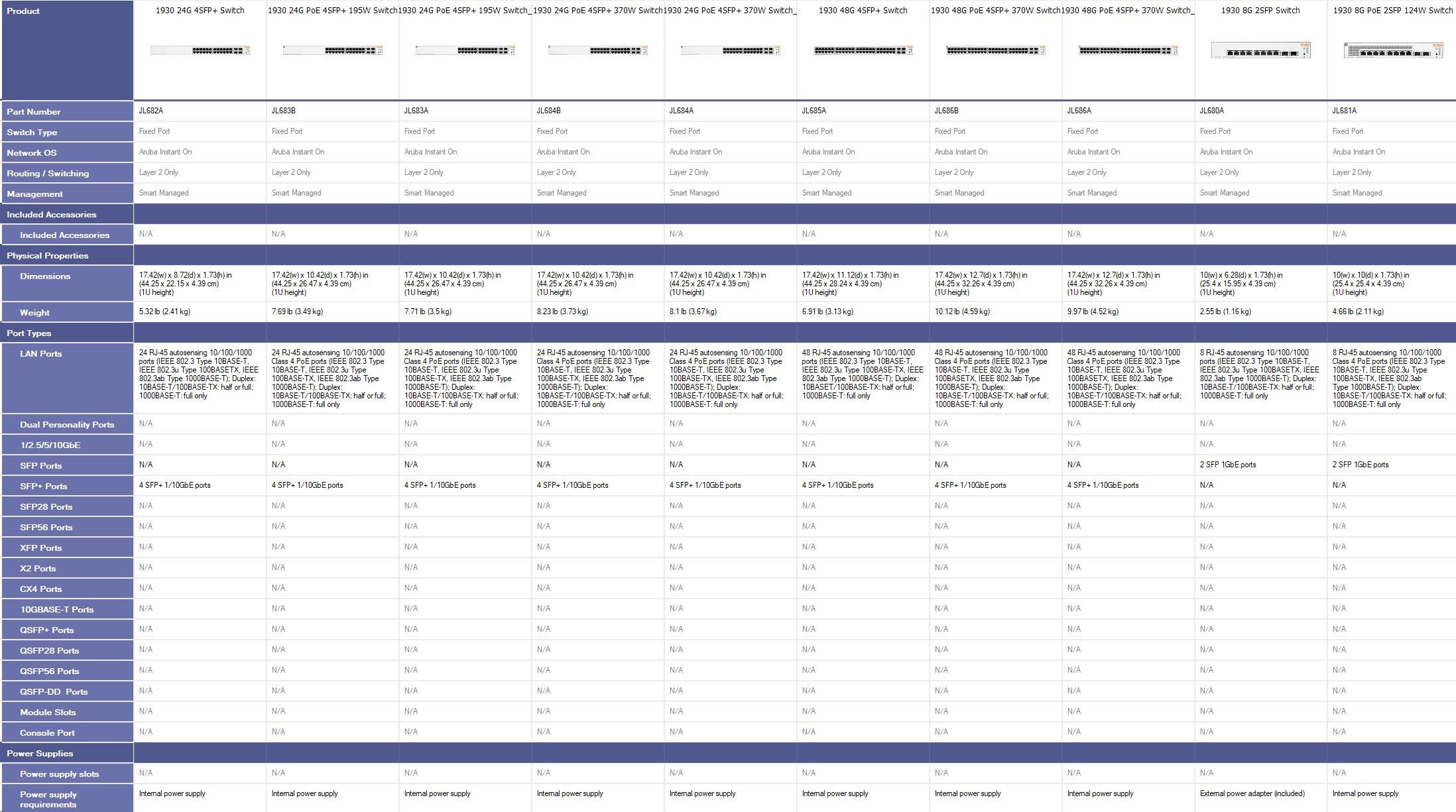 Popis HPE Networking Instant On Switch 48p Gigabit 4p SFP+ Fanless 1930 JL685A