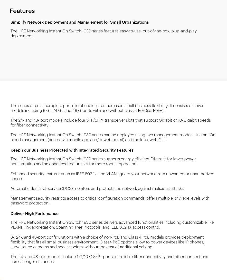 L2, QoS (Quality of service), VLAN (virtual local area network), DHCP snooping, Web management/Smart switch, VPN