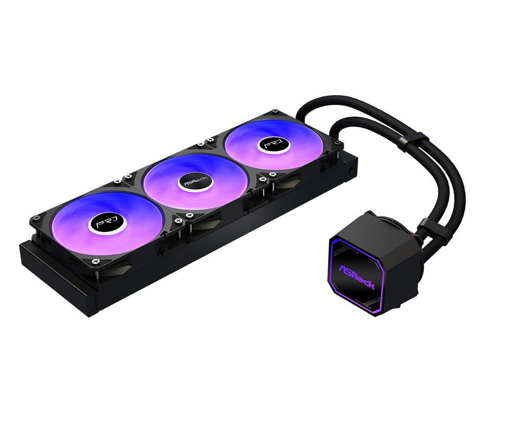 Vodní chladič ASRock Pro White 360 ARGB kombinuje elegantní design s vysokým výkonem a disponuje masivním 360mm radiátorem osazeným trojicí tichých ventilátorů s ARGB podsvícením. Jeho výbava dále zahrnuje otočný vršek pumpy, díky kterému lze logo nastavit do libovolné polohy, a kvalitní měděnou základnu pro maximální efektivitu přenosu tepla.