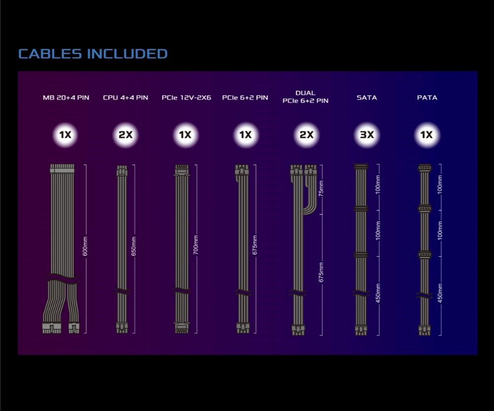 | Dueal PCIe 6+2 Pin Konektor | 2x / 2x (675 + 75 mm) |