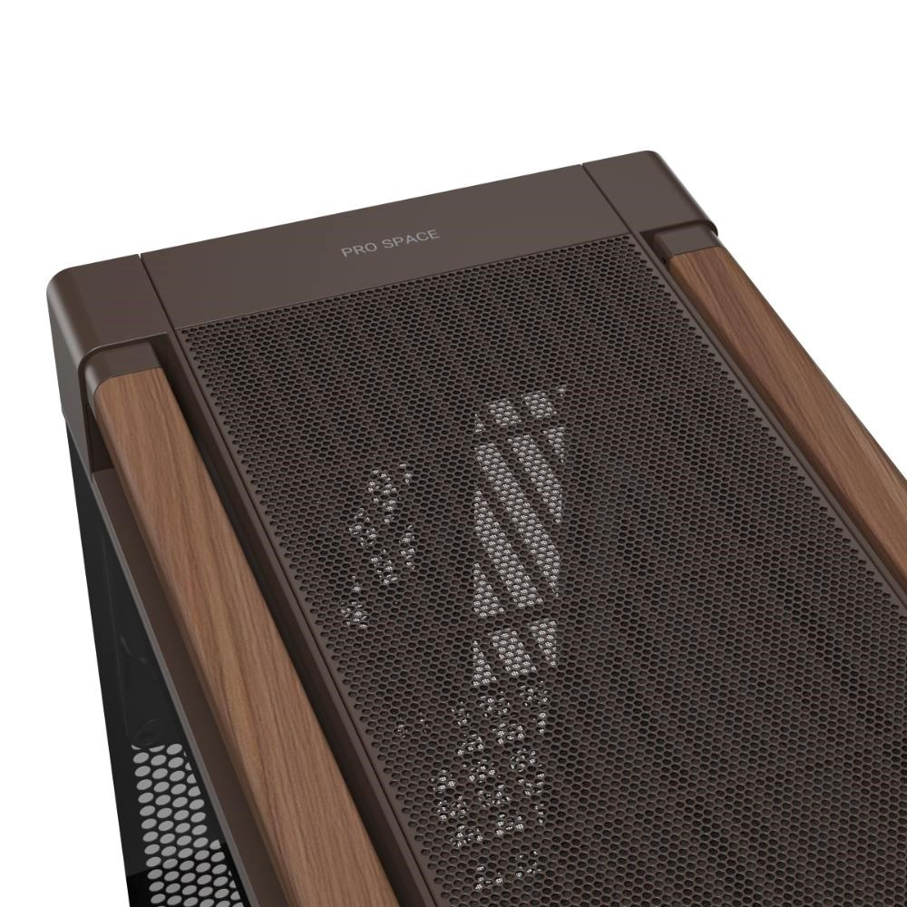 Popis ASUS case PROART PA602 WALNUT WOOD RETRO TG, Mid Tower, průhledná bočnice, hnědá