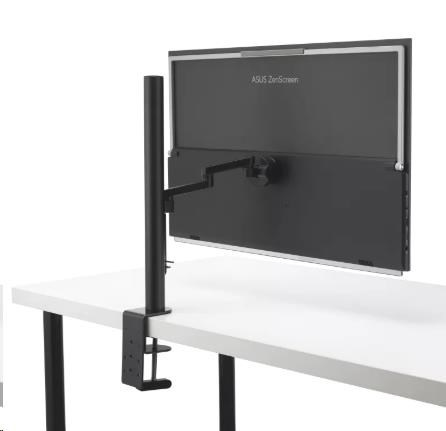 Rameno s C-svorkou umožňuje naklápět a otáčet obrazovku ZenScreen MB27ACF pro ideální sledování ve výšce očí. Nabízí náklon -5°-20°, natočení -90-90°, otočení -90-90° a nastavení vysunutí/zasunutí až o 144 mm. Rychloupínací mechanismus umožňuje snadnou montáž nebo odpojení monitoru od stojanu.