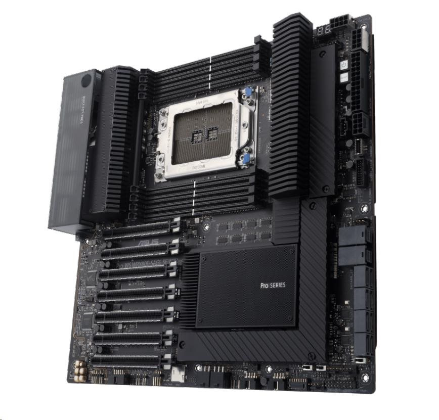 AMD WRX80 Ryzen™ Threadripper™ PRO extended-ATX workstation motherboard with Intel dual 10 G LAN, USB 3.2 Gen 2x2 Type-C port, 7 x PCIe 4.0 x16 slots, 3 x M.2 PCIe 4.0, ASMB9-iKVM, 2 x U.2 and 16 power stages