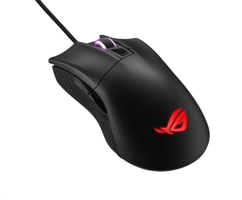 ROG Gladius II Core lightweight, ergonomic, wired optical gaming mouse with 6200-dpi sensor, ROG-exclusive switch-socket design and Aura Sync lighting
