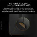 Přenosná herní podložka pod myš s voděodolným povrchem s nanovrstvou, odolným prošíváním proti oděru a protiskluzovou gumovou základnou.