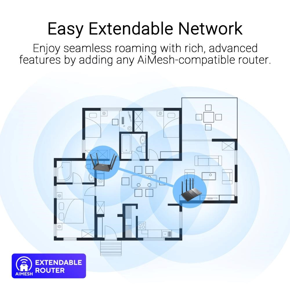 ASUS RT-AX52 Pro (AX3000) Dvoupásmový WiFi 6 rozšiřitelný router, okamžitá ochrana, plánování rodičovské kontroly, vestavěná VPN, kompatibilní s AiMesh