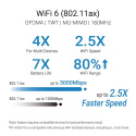 | Přenosová rychlost WiFi | 802.11a : Až 54 Mbps 802.11b : Až 11 Mbps 802.11g : Až 54 Mbps WiFi 4 (802.11n) : Až 300 Mbps WiFi 5 (802.11ac) : Až 867 Mbps WiFi 6 (802.11ax) (2.4GHz) : Až 574 Mbps WiFi 6 (802.11ax) (5GHz) : Až 2402 Mbps |