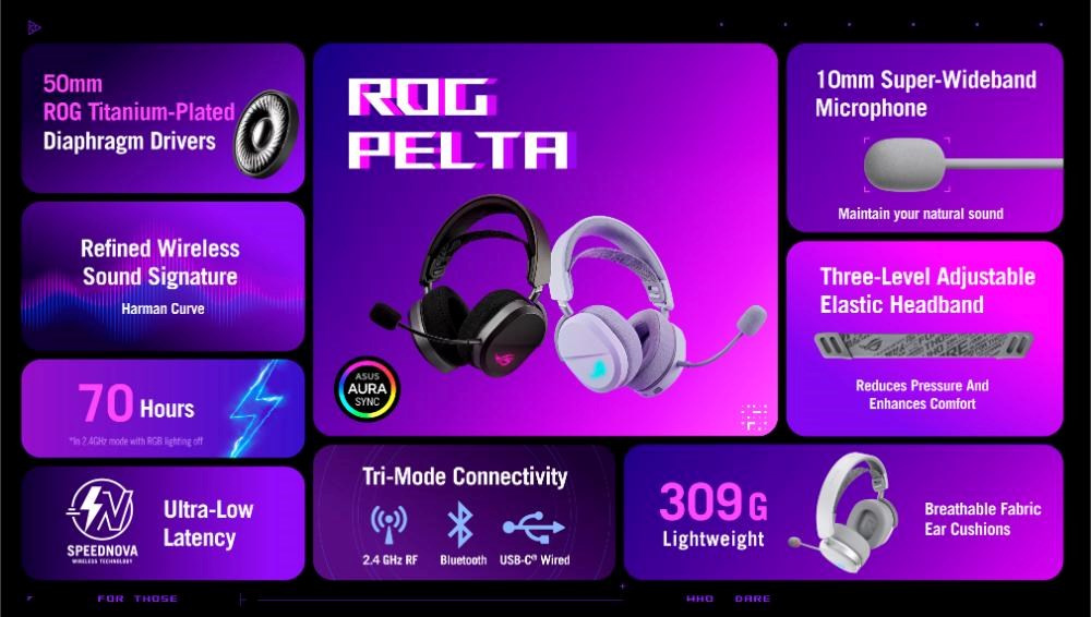 Popis ASUS sluchátka ROG Pelta, Bezdrátové BT a RF 2.4GHz, ARGB, bílá