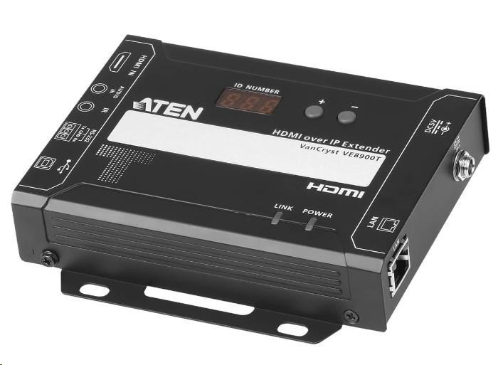 Popis ATEN True 4K HDMI H.265 over IP Transceiver s PoE (možno nastavit jako vysílač / přijímač)