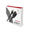 Aktivní prodlužovací USB 2.0 kabel AXAGON ADR-210 délky 10 metrů je ideální k propojení Vašeho počítače s USB zařízením jako je myš, klávesnice, webkamera, tiskárna, skener, plotr a dalšími. Aktivní USB repeater kabel zesiluje průchozí signál a umožnuje připojit USB zařízení na výrazně větší vzdálenost, než Vám umožní pasivní kabel. Dosah kabelu je možné dále prodloužit použitím několika kabelů za sebou.