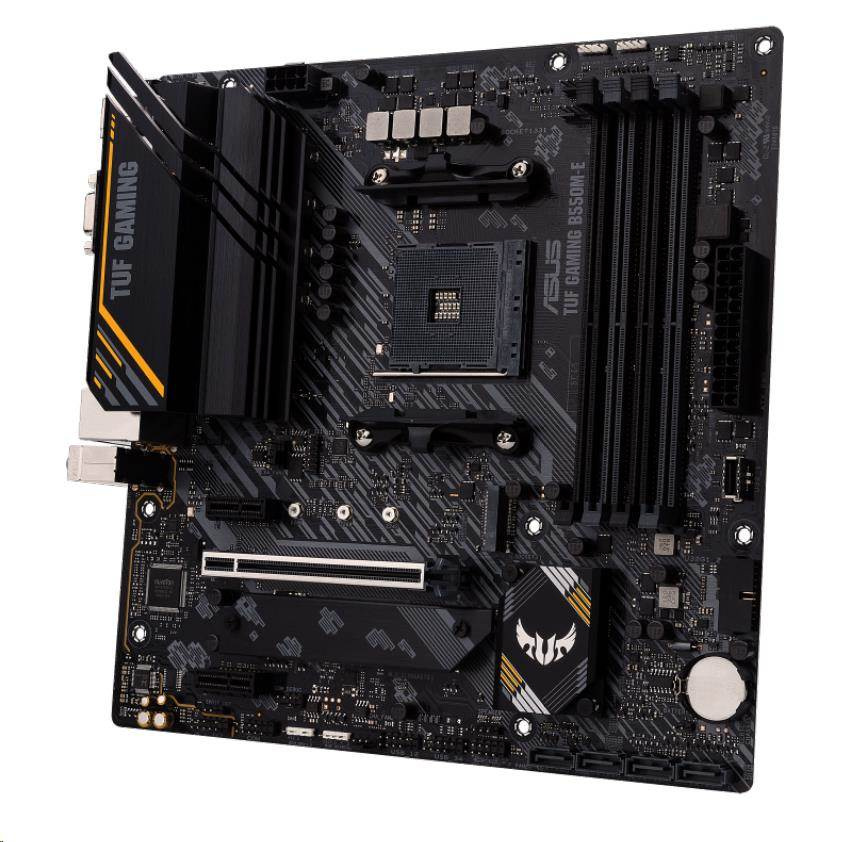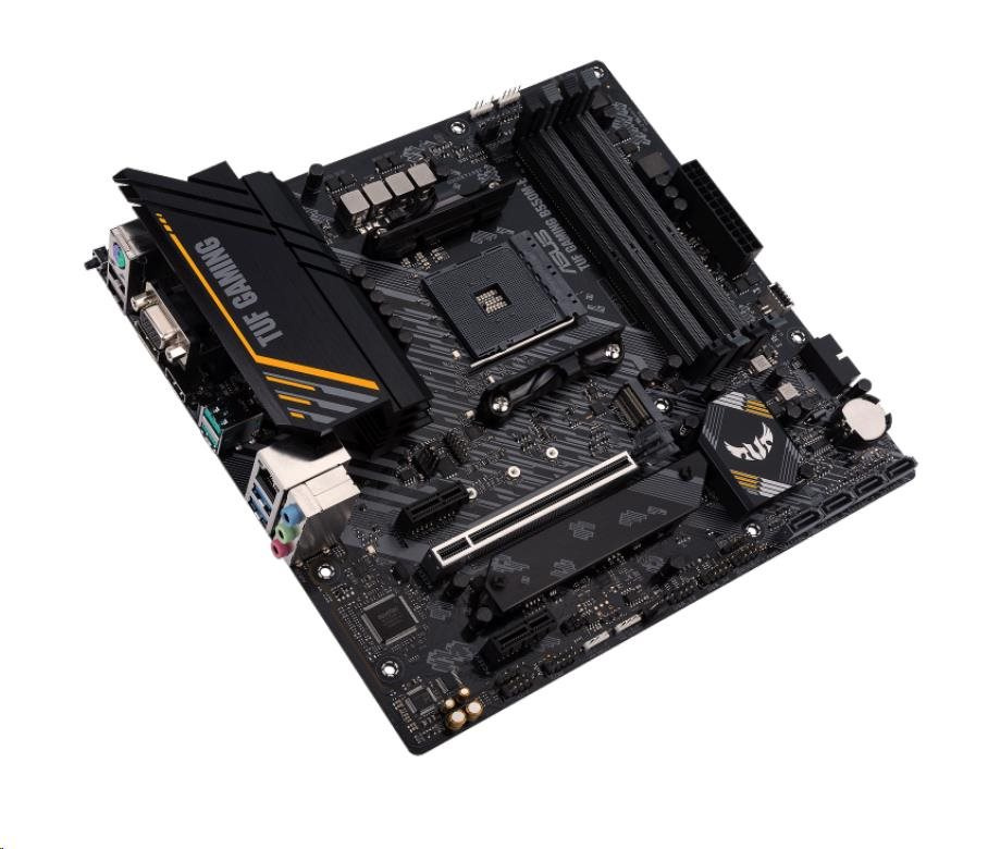 AMD B550 (Ryzen AM4) micro ATX gaming motherboard with PCIe 4.0, dual M.2, DisplayPort, HDMI, D-Sub, SATA 6 Gbps, USB 3.2 Gen 2 Type-A, front USB 3.2 Gen 1 Type-C®, BIOS FlashBack™, and Aura Sync RGB lighting support