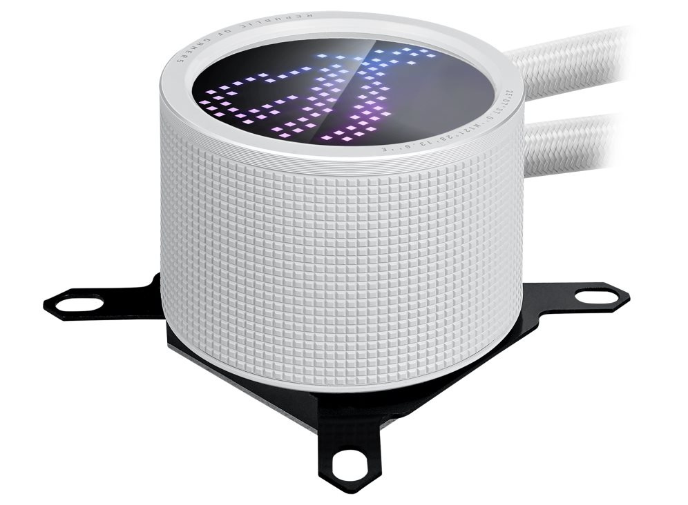ROG Ryuo III 360 white edition all-in-one liquid CPU cooler with Asetek 8th gen pump solution, Anime Matrix™ LED Display and ROG ARGB cooling fans