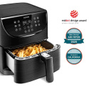 Horký vzduch rotuje kolem jídla ze všech stran a tím dosahuje kvalitního a rovnoměrného propečení a uvaření pokrmů. Díky této technologii se fritéza předehřeje během pouhých 5 minut.
