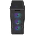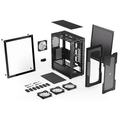 Skříň formátu Middle Tower s průhlednou bočnicí z tvrzeného skla nabízí dvě 2,5" pozice pro SSD disky a dvě 3,5" pozice pro pevné disky. Na horní části se nachází dva USB 3.0 porty, sluchátkový výstup a audio vstup pro mikrofon. Vybavena je čtyřmi 120 mm ventilátory s ARGB podsvícením, které spolu s perforovaným čelním panelem zajišťují dostatečné proudění vzduchu. Důmyslné řešení umožňuje pohodlné umístění až 360 mm dlouhého výměníku vodního chlazení na přední straně. Ve skříni je dostatek prostoru pro chladič CPU do výšky až 162 mm a grafickou kartu o délce až 370 mm. Dodávána je bez zdroje. Součástí je také interní ARGB ovladač a sada prachových filtrů.