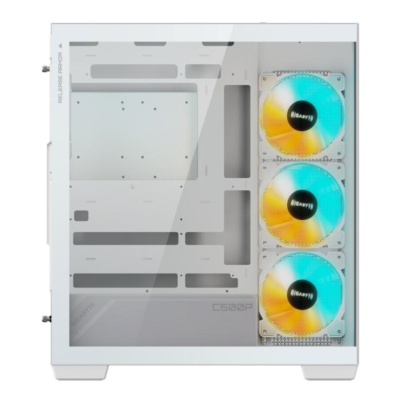 Přední i boční panely jsou vyrobeny ze 4mm tvrzeného skla, které nabízí 270° panoramatický pohled na vnitřní sestavu. To umožňuje uživatelům snadno předvést své přizpůsobené PC zařízení. Konstrukce obou skleněných panelů bez vrtání snižuje riziko poškození a zvyšuje celkovou vizuální přitažlivost.
