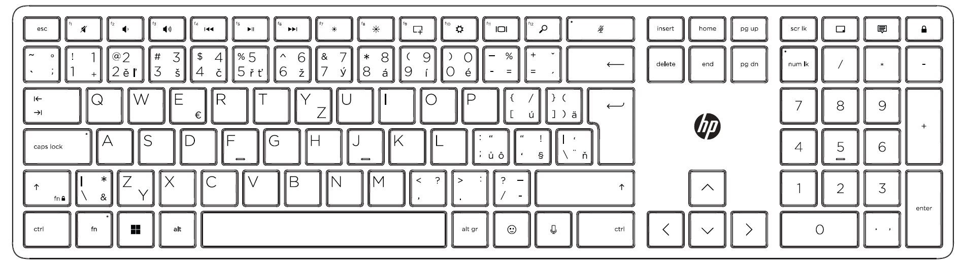 Třízónová plnohodnotná kabelová klávesnice HP 125 disponuje patkami nastavitelnými v rozmezí 0–6 stupňů, které zaručí pohodlné psaní. S kontrolkami LED pro Caps Lock, Num Lock a Function Lock snadno rozpoznáte, zda jsou tyto funkce aktivní.