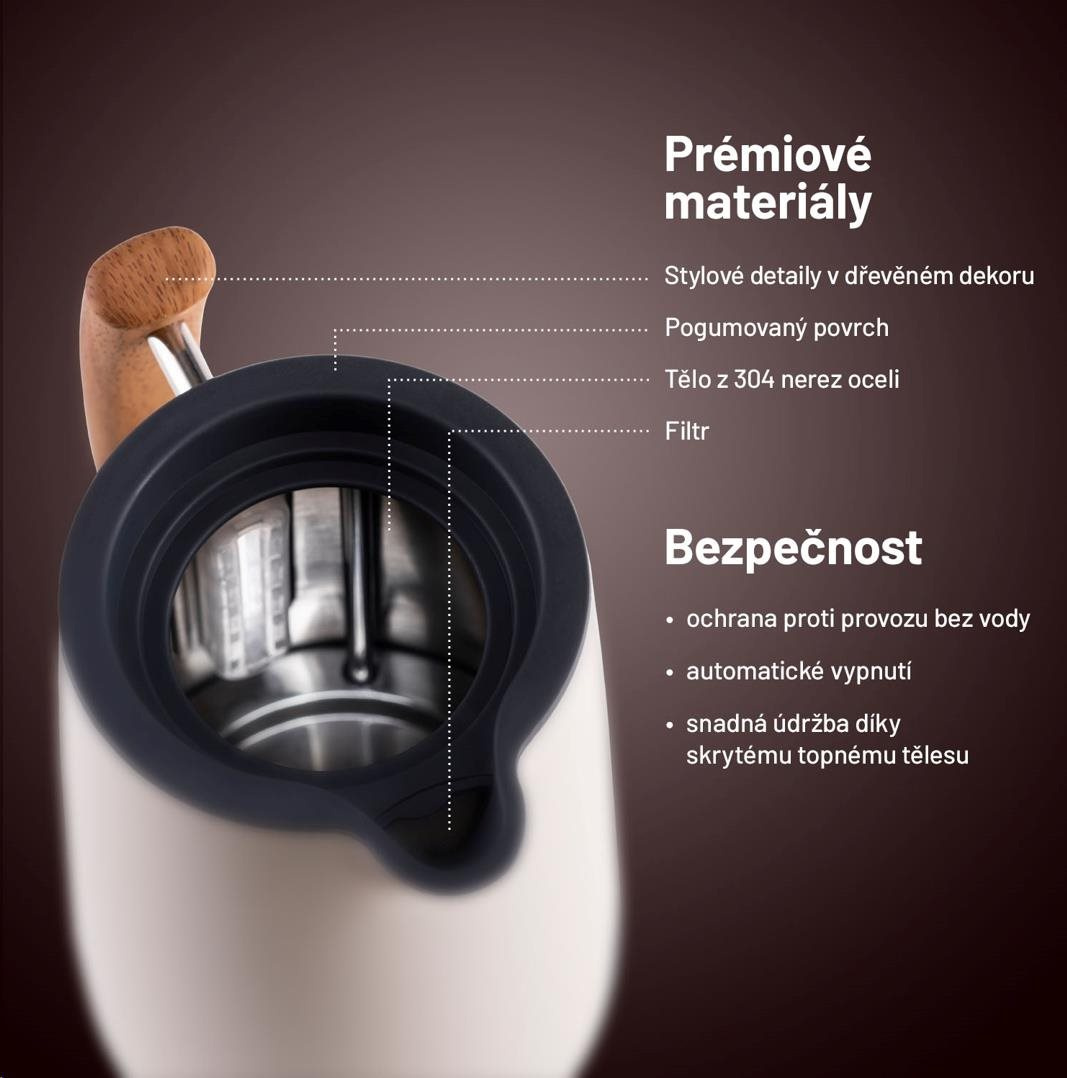 Konvice je vybavena pojistkou proti přehřátí i vaření bez vody.