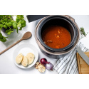 Přístroj disponuje 9 přednastavenými programy - rýže, hrubé obiloviny, porridge, vepřové, kuře, luštěniny/šlachovitá masa, rychlá omáčka, polévka, ohřev. Pouze veškeré suroviny vložíte do tlakového hrnce, uzavřete a navolíte příslušný program. Obdobně máte možnost vybrat si ze 3 úrovní struktury masa, tuhá až měkká. Čas vaření lze upravit i manuálně. Díky funkci Keep Warm udržíte jídlo teplé i pro opozdilce. Funkce odloženého startu zase pomůže, abyste po příchodu domů měli již jídlo hotové.