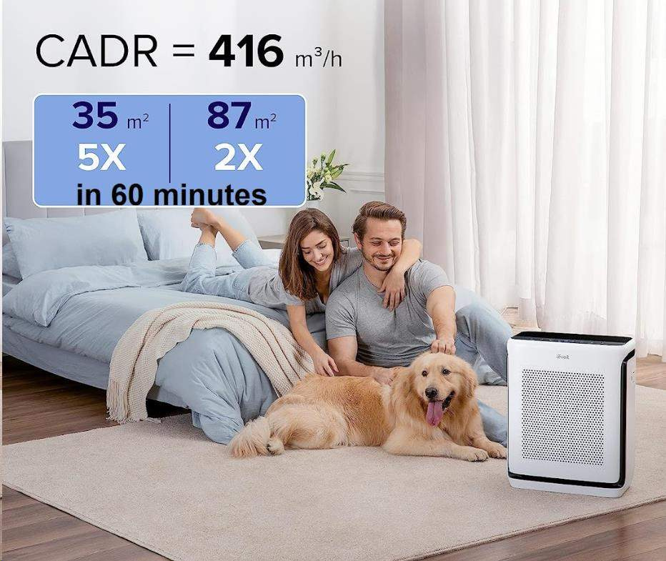 Levoit Vital 200S PRO disponuje výkonem až 416 m3/h CAD a vyčistí dvakrát za hodinu místnost o velikosti až 87 m2 a až pět krát za hodinu místnost o velikosti 35 m2.