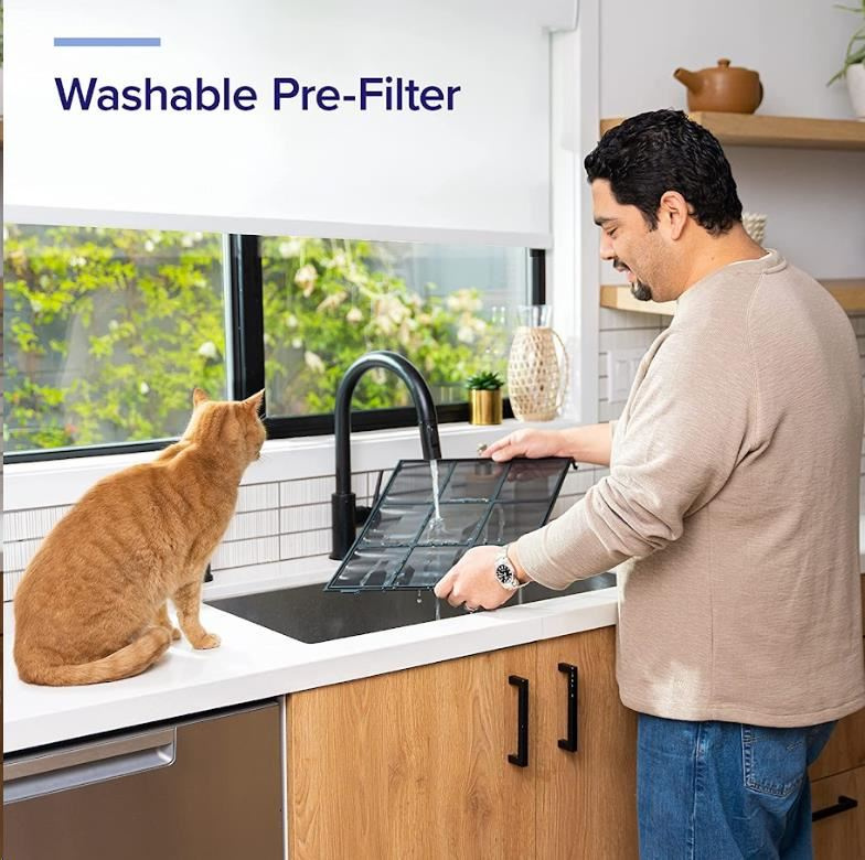 Tato čistička vzduchu je ideální pro majitele domácích mazlíčků, protože její velký vstup vzduchu ve tvaru písmene U pomáhá předcházet ucpávání srstí, takže filtrační systém může vždy účinně plnit svou práci. Stačí klepnout na režim Pet Mode v bezplatné aplikaci VeSync a čistička Vital 200S bude střídavě používat střední a vysoké otáčky, aby se snížil zápach a odstranila se srst domácích mazlíčků. Tím udrží váš domov svěží a energeticky úspornější. Zároveň jsou ty největší nečistoty zachyceny na umývatelný předfiltr, který jednoduše umyjete a ušetříte opotřebení filtru a tím i vaši peněženku.