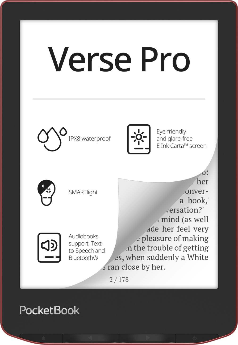 PocketBook Verse Pro se vyznačuje 6palcovou HD obrazovkou s displejem E Ink Carta™ šetrným k očím a rozlišením 1 072 × 1 448 a 300 PPI.