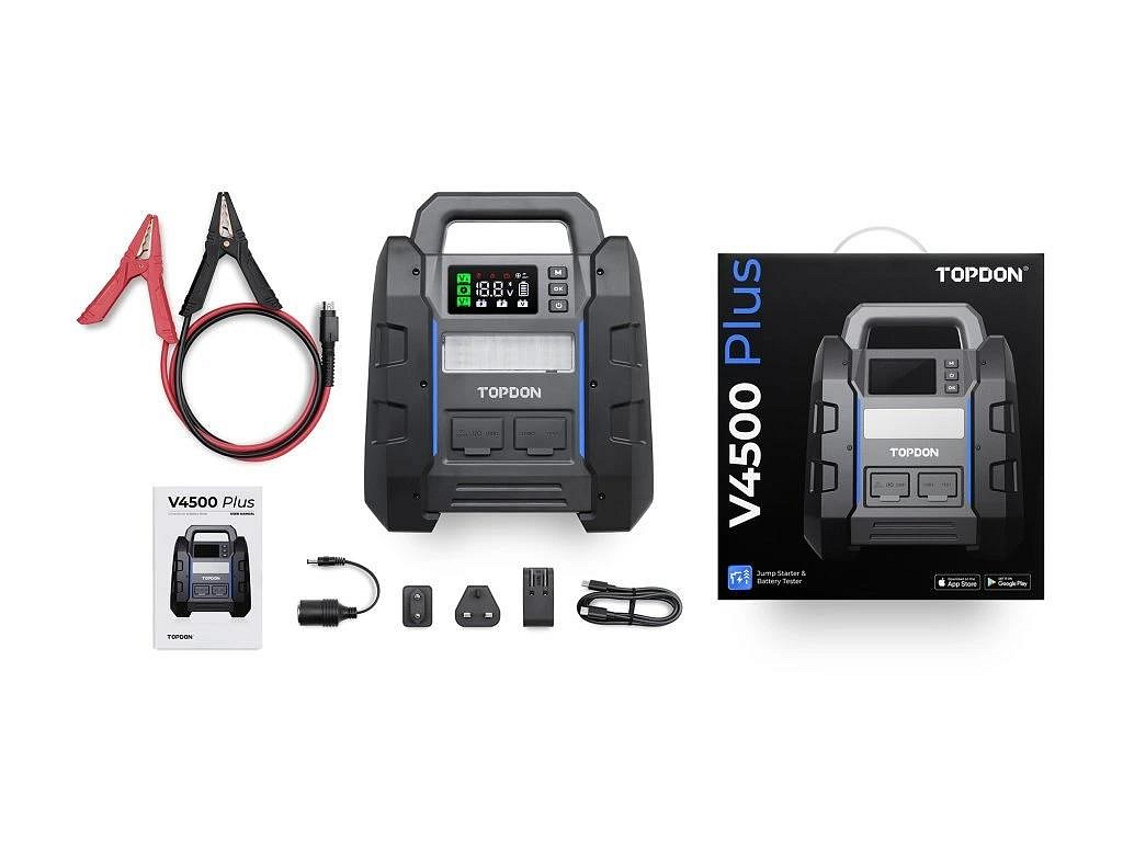 12 V startér TOPDON V4500 Plus je určen speciálně pro profesionální vozidla a vozidla s vysokým výkonem. Pyšní se špičkovým proudem až 4500 A a během několika sekund rychle oživí nejrůznější vozidla - od návěsů a přívěsů až po terénní vozidla a lodě. Navíc s kapacitou až 45 startů na jedno nabití budete vždy připraveni vyrazit na cestu s jistotou.
