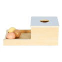 Dřevěný box (bedýnka) s dřevěnými koulemi v přírodních pastelových barvách seznámí miminko s vlastnostmi objektů (předmětů), v tomto případě dřevěných koulí. 3 dřevěné koule v přírodním provedení a v jemných pastelových barvách mizí v dřevěném domečku (boxu), aby se pak dveřmi vykutálely do dřevěné zahrádky (ohrádky). Tuto záhadu musí každé dítko vyřešit a tak bude tuto zábavnou činnost opakovat znovu a znovu. Při opakované hře děti zdokonalují své dovednosti, zabaví se a užijí si spoustu legrace.