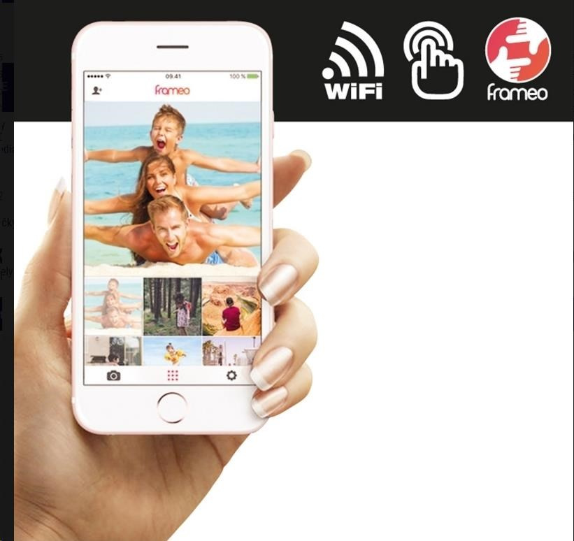 WiFi digitální fotorámeček s úhlopříčkou 15,6", rozlišení 1920x1080px, 16:9 IPS, přehrávání JPEG/MP3/Video, 8GB interní paněť, aplikace FRAMEO (Android/iOS, FREE) pro zasílání obrázků a videí z telefonu, G-senzor pro h/v pozici, micro SDHC slot, micro USB, černý. WLAN modul 802.11 b/g/n, opěrka na stůl, jednoduchá obsluha a nastavení pomocí bezplatné aplikace FRAMEO, ideální pro aktualizaci obsahu a nastavení rámečku z telefonu doma i na cestách, možnost horizontálního i vertikálního provozu, vnitřní paměť pro až 999 obrázků, maximální doba pro video 15s, , micro SD karty do 32GB. Rozměry 405x245x23mm, hmotnost 1390g, síťový zdroj 5V/2A.