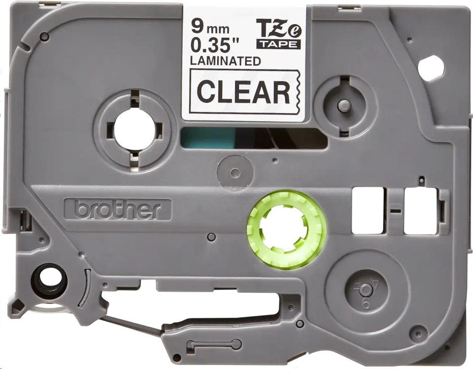 BROTHER kazeta TZ šířky 9mm, laminovaná TZE-121, průsvitná / černá.