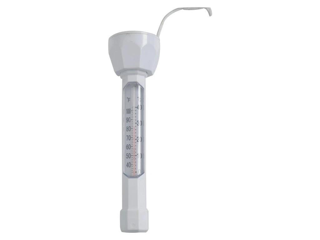 Plovoucí teploměr, který měří teplotu vody v bazénu. Má provázek, díky kterému je možné ho přivázat např. ke schůdkům. Teploměr měří teplotu v rozmezí 0 - 40°C..