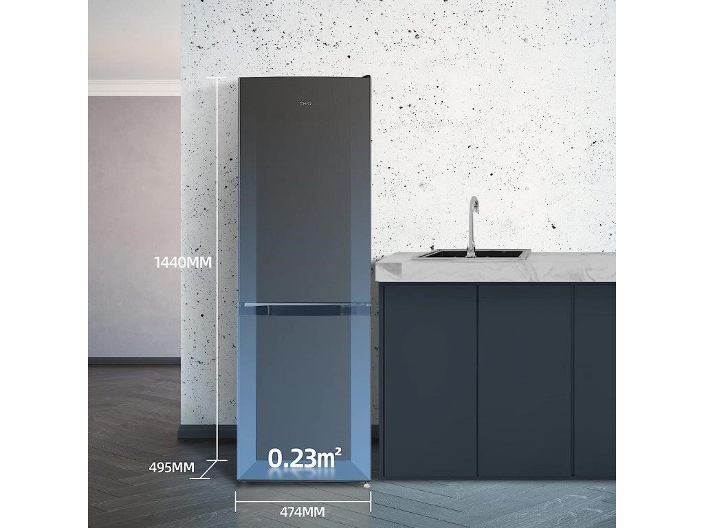 Popis CHiQ kombi, mrazák dole, 157l (L 109l, M 48l), LowFrost, tm. metal. + 12 let záruka na kompresor (bez registrace)