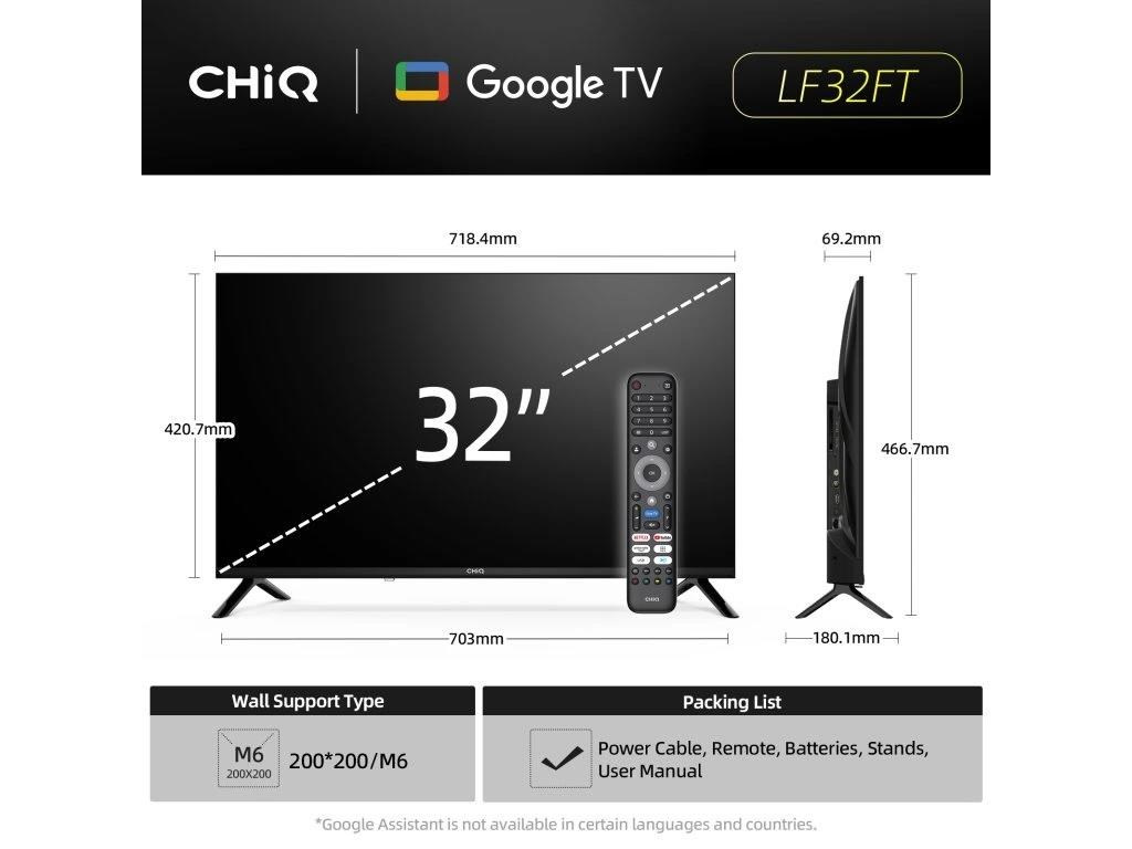 CHiQ 32“ LF32FT, ultratenká bezrámečková Smart Google TV, HDR10 / HLG, obrazovka Full HD s rozlišením 1920 x 1080 pixelů