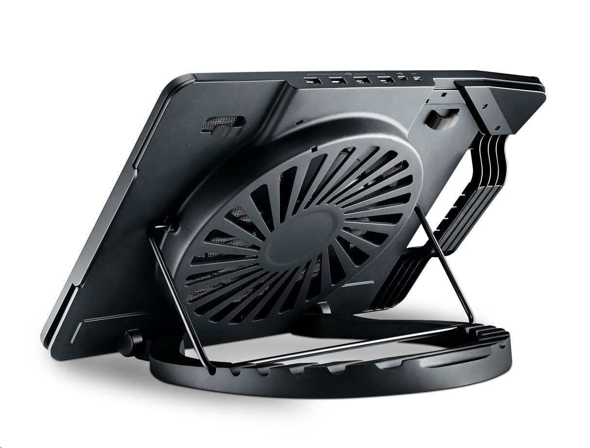 The ERGOSTAND III is an ergonomic laptop cooling stand that will make using your laptop fun and uplift your business productivity. A large 230mm ultra silent fan with all new Loop Dynamic Bearing and exclusive fan blade design provides better air dissipation, ultra low noise, and longer lifespan to increase laptop performance. Removable front plate enables quick cleaning to sustain high performance. 6 Ergonomic height settings let you quickly choose the ideal angle to relieve neck and shoulder pain. Grooves and hooks keep wires clean and tidy while the USB hub expands one laptop port into four (4). Compatible with 17” laptops and tablets by adjustable anti-slip holders.
