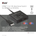 Club3D Switch, HDMI na 2xHDMI Oboustranný 2v1, 8K60Hz, 4K120Hz
