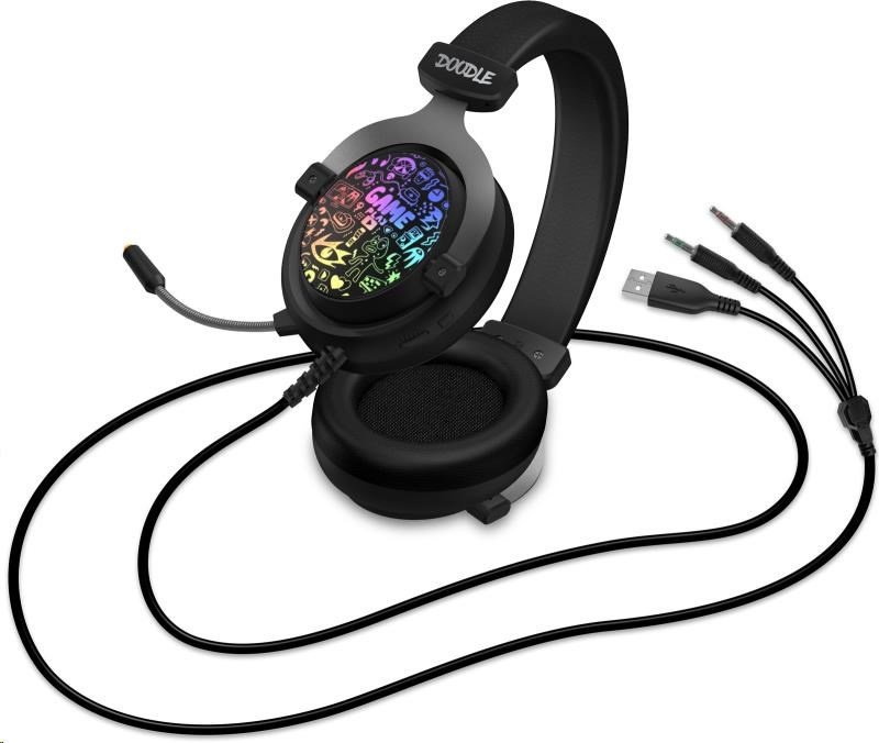 Popis CONNECT IT DOODLE RGB herní sluchátka s mikrofonem, 2xJack+USB, černá