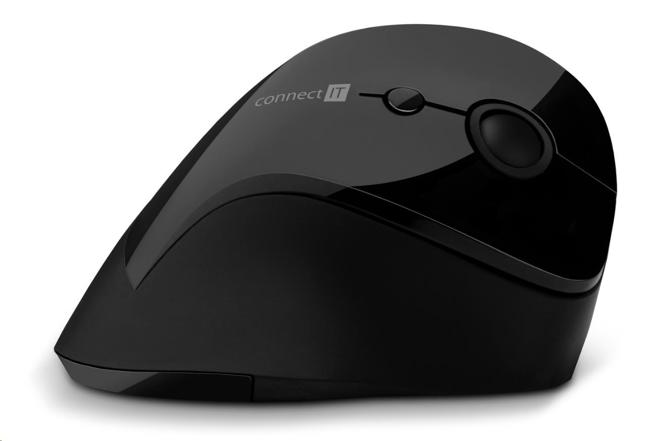 CONNECT IT FOR HEALTH ergonomická vertikální myš, (+ 1x AA baterie zdarma), bezdrátová, ČERNÁ