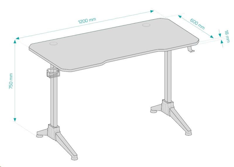 Extra velká deska stolu pro jeden nebo dva monitory, klávesnici, myš, podložku atp.