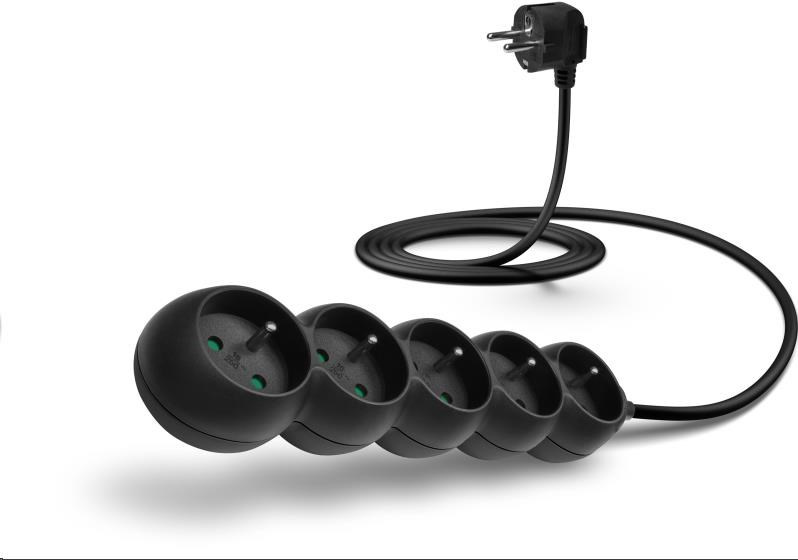 Popis CONNECT IT prodlužovací kabel 230 V, 5 zásuvek, 2 m, bez vypínače (černý)