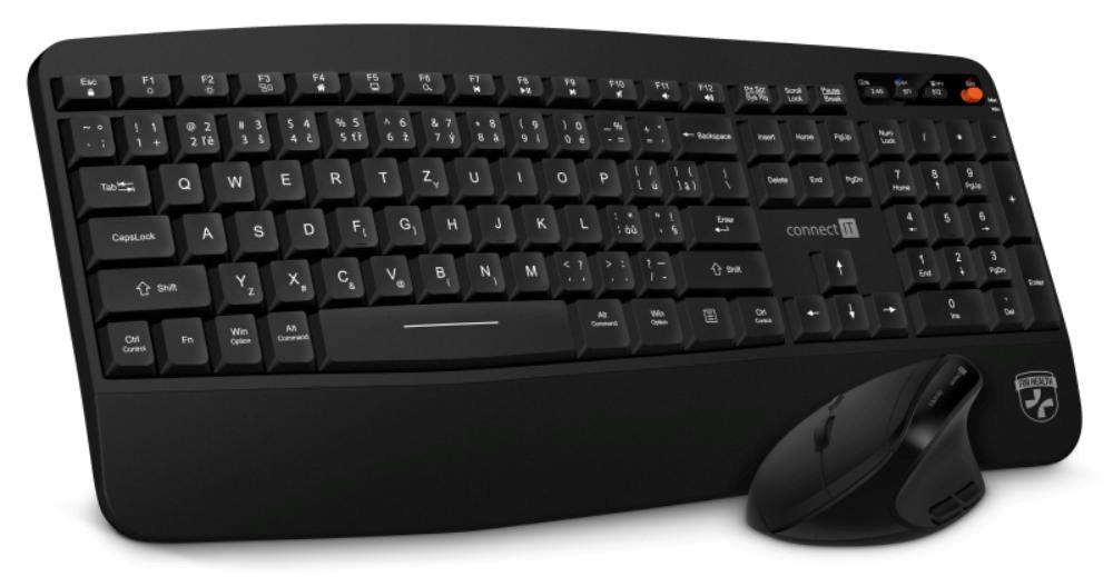 Ergonomický set klávesnice a myši určených speciálně jako prevence proti syndromu karpálního tunelu. Nabízí možnost připojení až na tři zařízení díky technologii TriMode (2x BT 5.1 + 2.4 GHz wireless). Vhodná pro domácí použití i pro vysoko zátěžové profesionální použití v kancelářích a firmách. CZ+SK lokalizace (české a slovenské znaky).